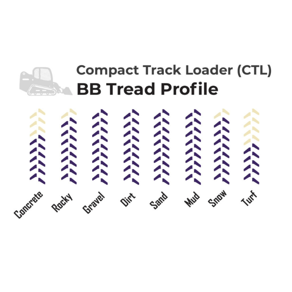 The BB Profile is an open pattern option to our BL profile. This design helps to improve traction in mud and loose debris