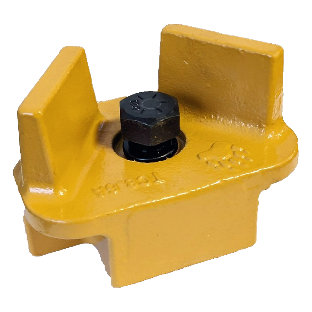 No need to pull equipment off the job for welding. Bolt-on Track Claws using essential tools. - Save Money